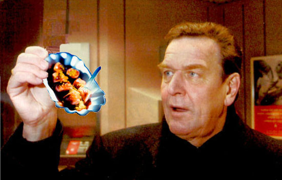 zum Beispiel Gerhard Schröder, der sich in der Neujahrsnacht eine Blüte andrehen lässt.